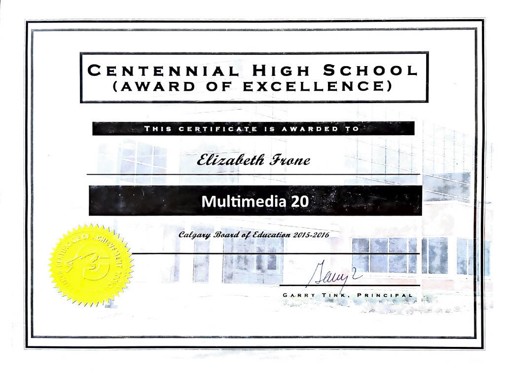 Grade 11 Multimedia Award, 2015-2016, Centennial High School.