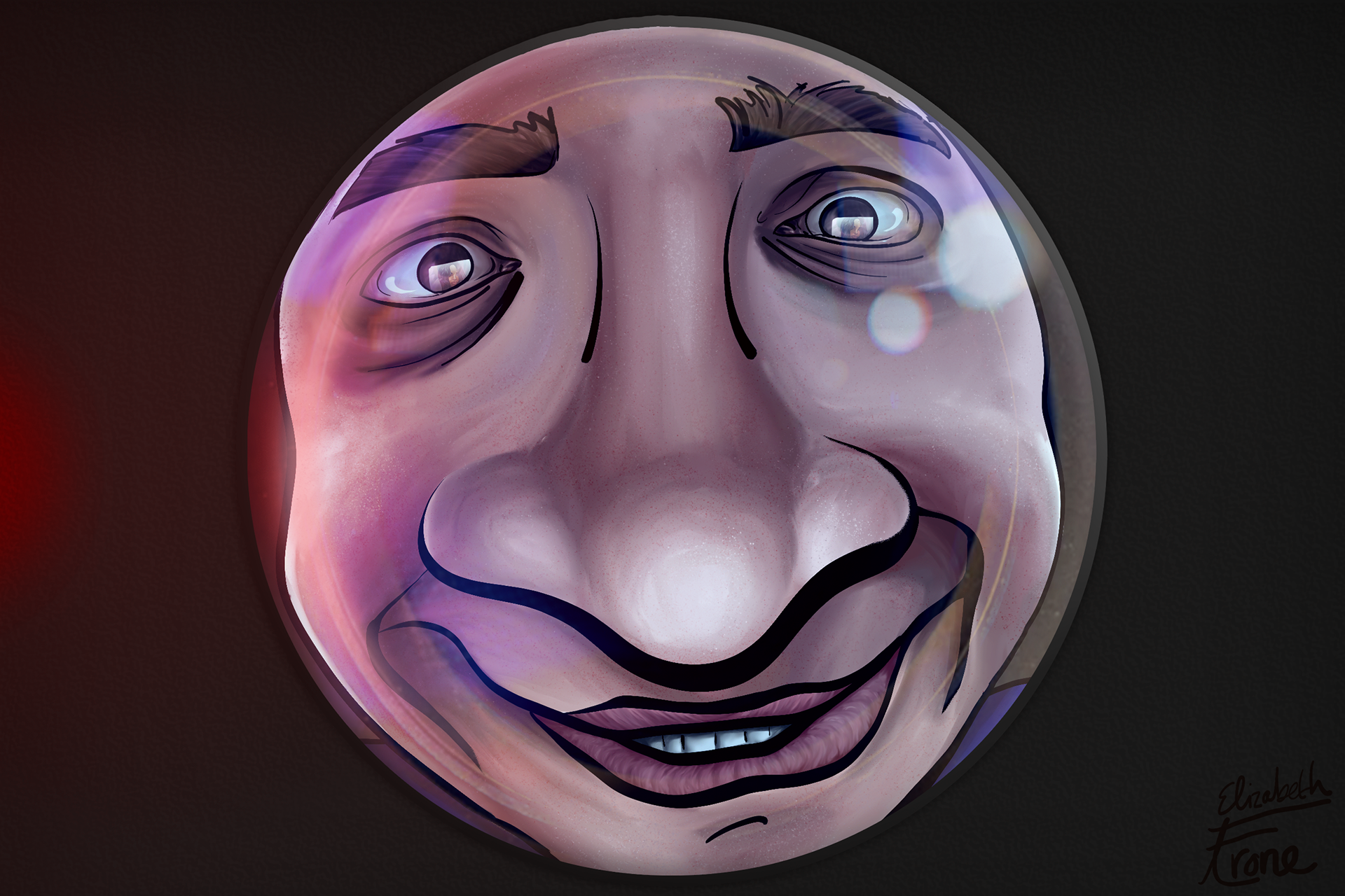 John Berger’s quote in his book Ways of Seeing, “Men look at women. Women watch themselves be looked at,”[1] was the initial inspiration for this work. A woman is being watched by a man through his screen. The man is seen through his reflection in the lens of his laptop webcam. The laptop’s “camera-on” indicator light (seen next to the lens) is on, creating the implication that the man is also being watched. This is inspired by people who cover their webcams in the fear that they are being secretly watched by the government and/or hackers. The drawing showing the man is seen from the perspective of his FBI agent/hacker, therefore implicating the viewer into the drawing as watcher by proxy. Meanwhile, the viewer is seeing the artwork digitally, through a screen that may very well also have a webcam attached. It is then encouraged for the viewer to contemplate this works implications to their own lives and digital security: are you also being watched? How is the public and private content that you make available (both intentionally and unintentionally) online being consumed, reacted to, and exploited by others? How do you react to other people and content on the internet as a consumer yourself?