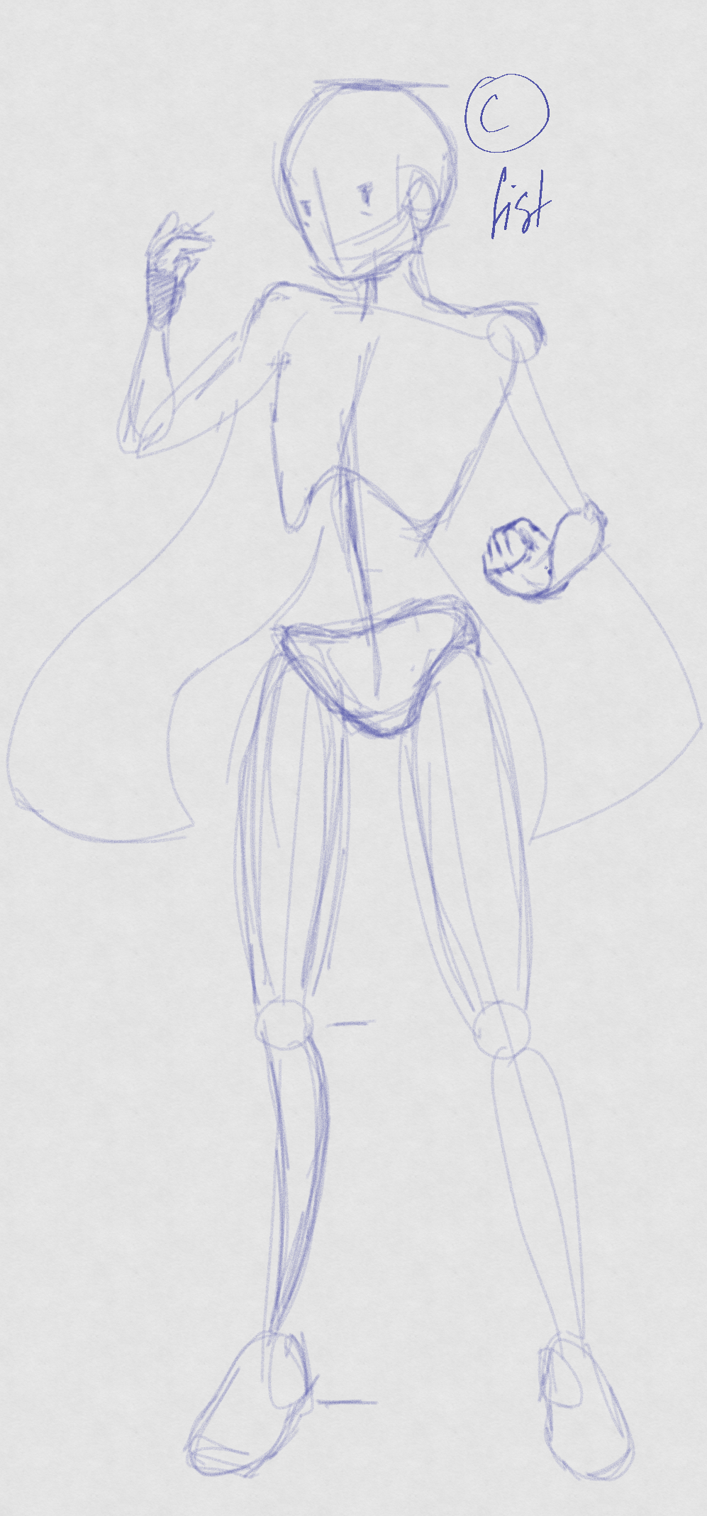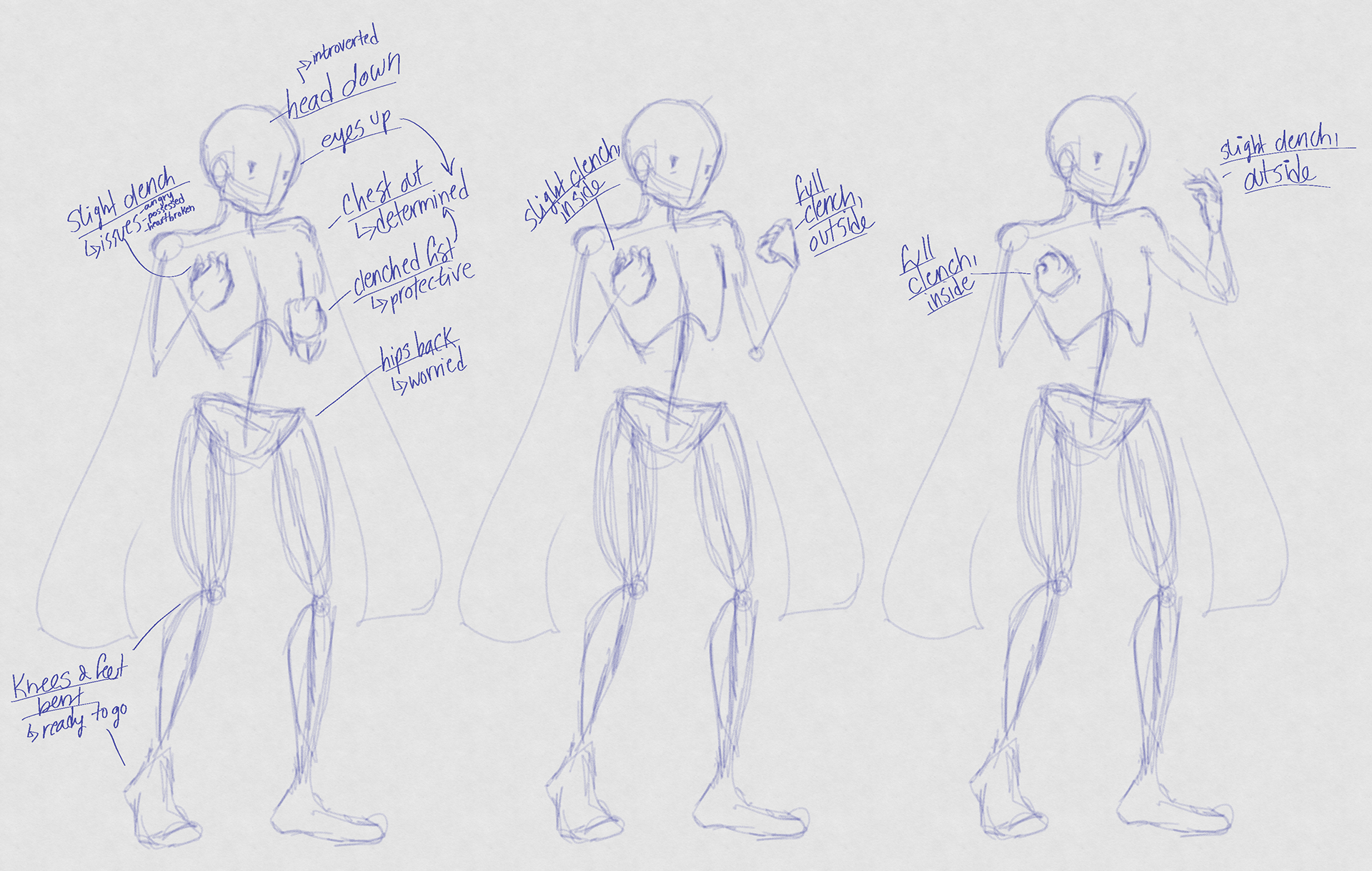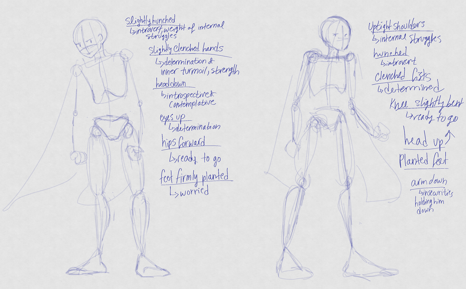 3.5. Character silhouette comparison between the client's feedback, the original design, and my proposed adjustments.