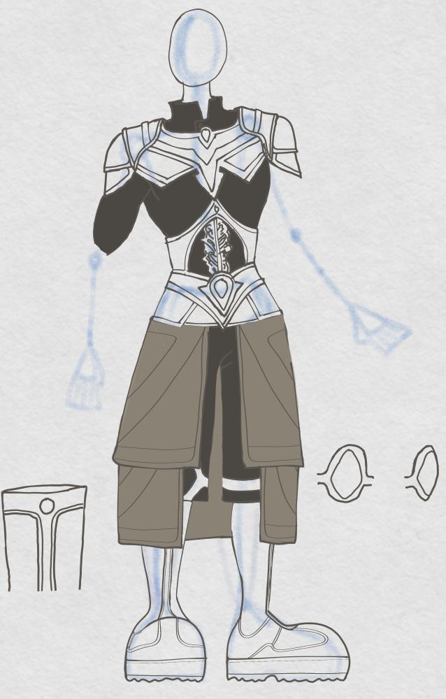 The client wanted the designs to be kingdom hearts inspired, so after researching, taking notes, and creating and ingesting a moodboard, I started designing.